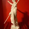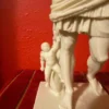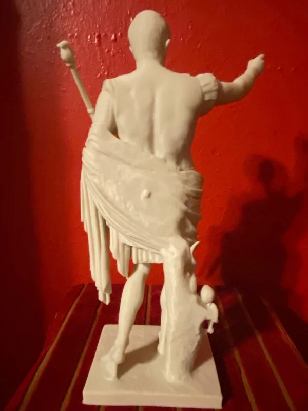 Like all Roman and Greek statues, this sculpture was originally painted in vibrant colors. Traces of red, blue, and gold pigments have been found on the surface, revealing that what we now see as pristine white marble was once richly polychromatic, intended to bring the figure to life.
