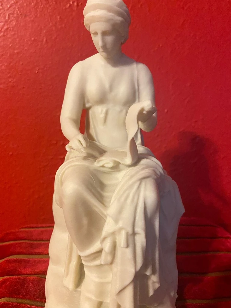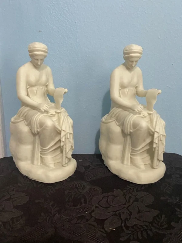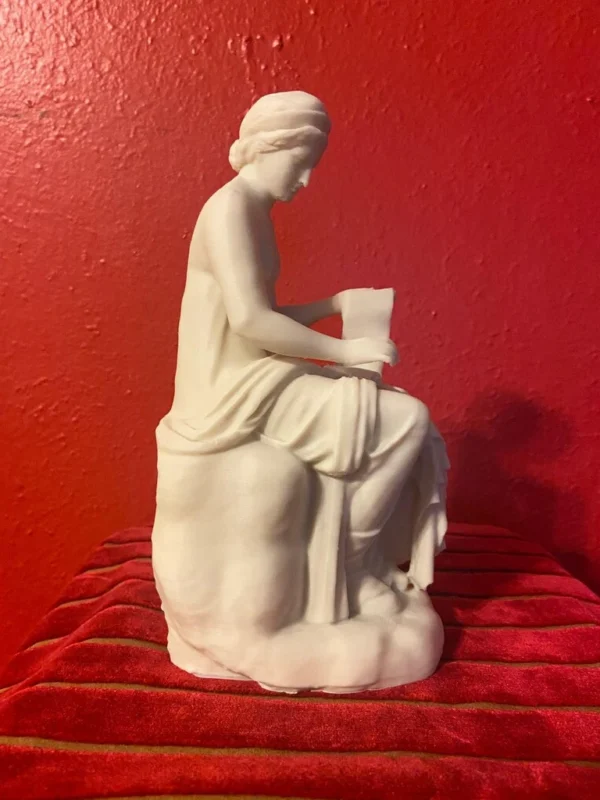 The statue of Clio, the Muse of History, stands with dignity among the sculptures in the Hall of the Muses. Carved in marble and part of a sculptural ensemble discovered in 1774 at the ancient villa of Gaius Cassius near Tivoli, this figure serenely represents the muse responsible for preserving the memory of past events. The sculpture is a Roman copy inspired by a Hellenistic original from the 3rd century BCE, although it was partially restored in the 18th century by Neoclassical artists who reinterpreted certain features according to the tastes of the time. Clio is shown holding a rolled scroll in her hands, symbol of historical records, and her thoughtful expression suggests contemplation and wisdom. Her posture is elegant yet restrained, with a long tunic that falls in soft folds, lending her a solemn, instructive presence in keeping with her role as the divine chronicler. Soon, we will complete and offer replicas of the full sculptural ensemble of the Muses and Apollo, whether for ritual use or to recreate the hall in your own home. At the center of this group stands the majestic figure of Apollo Musagetes, leader of the Muses’ chorus. Clothed in a long tunic and holding a lyre decorated with the figure of the flayed satyr Marsyas, Apollo represents not only music and poetry but also the intellectual harmony that unites the Muses. This statue, like those of the Muses, is based on a Greek original from the 3rd century BCE, although it survives today in the form of Roman replicas restored in the 18th century. Arranged along the walls, the statues of seven Muses appear in varied poses, each identifiable by her symbolic attributes:
