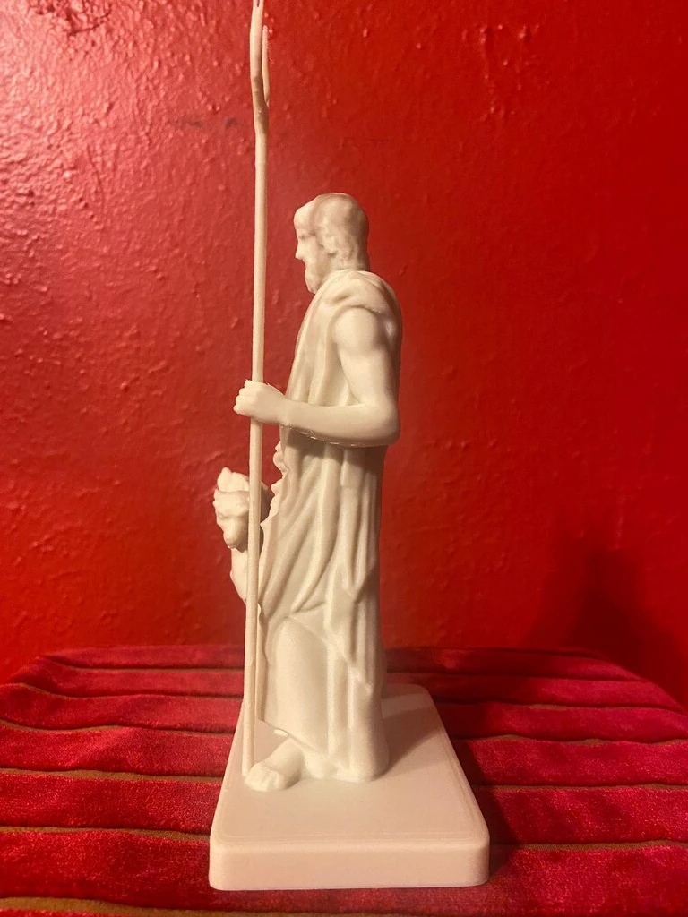 The Ludovisi Pluto bust, a masterpiece of Roman art dating back to the 2nd century CE, is housed in the Palazzo Altemps in Rome. This bust, which intricately captures the majestic and enigmatic figure of Pluto, has recently been integrated into an impressive statue reconstructed by our talented sculptor at Hephaisteion, specializing in restoring classical works to their fullest glory. Pluto depicted with a stern expression, he symbolized power over the underground world, death, and wealth, which is why the Romans called him “Dis o Diti,” comes from the Latin root meaning “rich” or “wealth as he was also the lord of the riches hidden within the earth