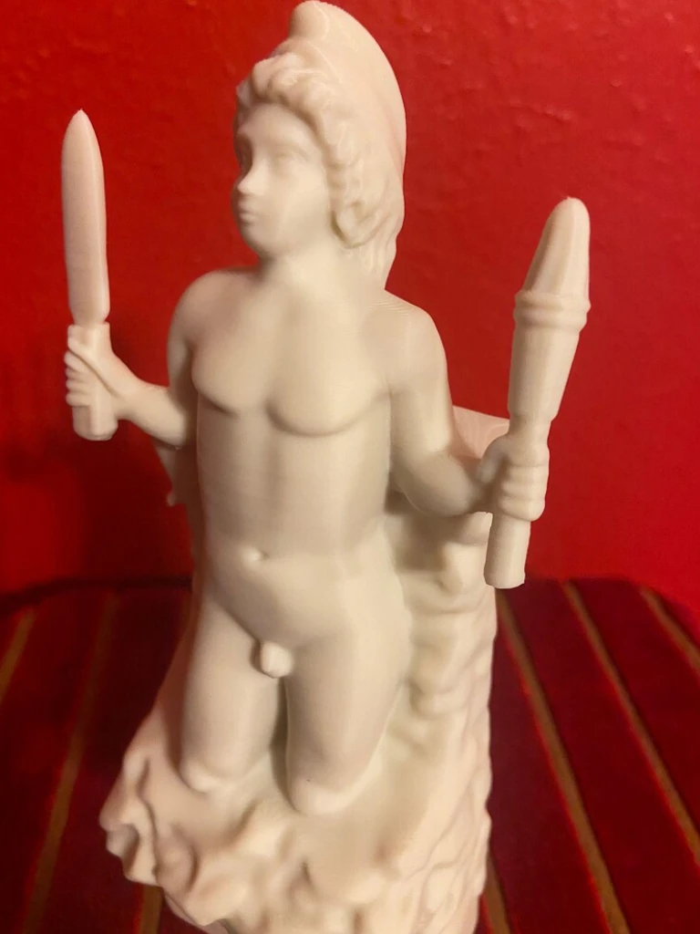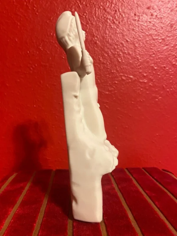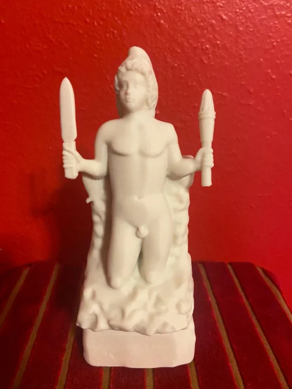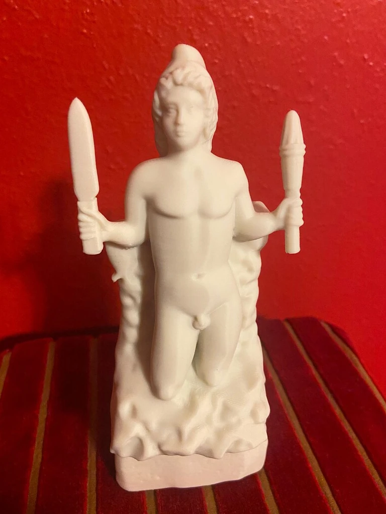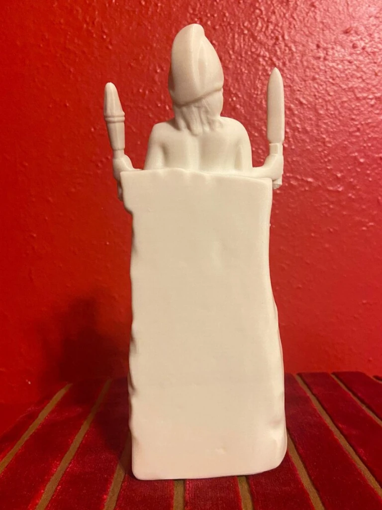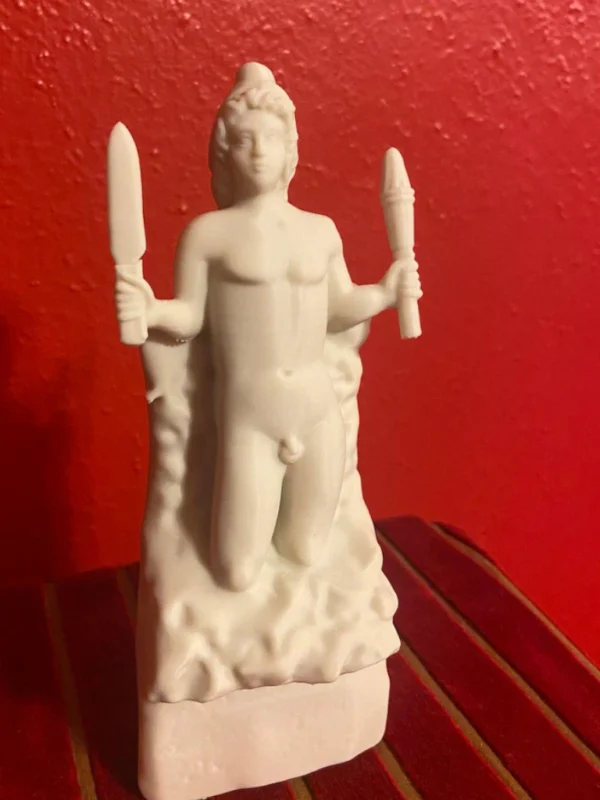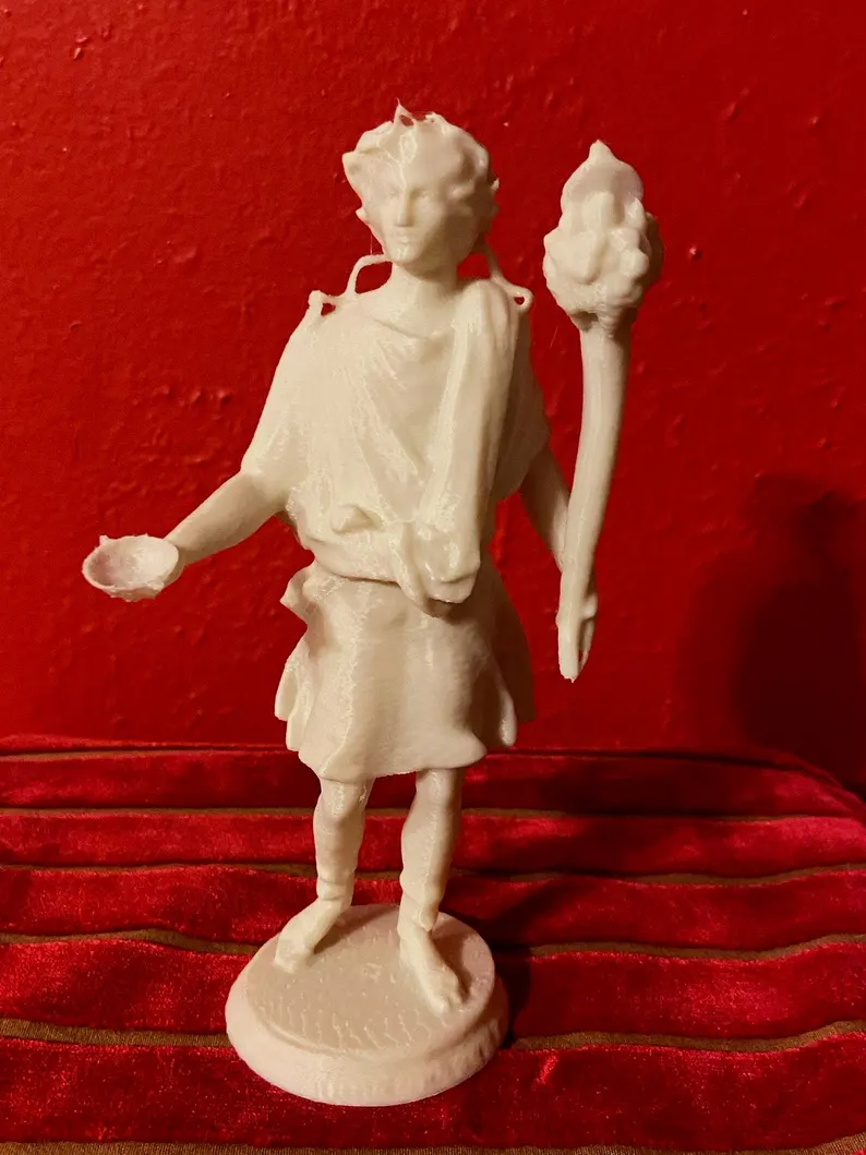 This impressive PLA print reproduction of the marble sculpture, dated between 180 and 192 CE during the reign of Emperor Commodus, depicts Mithras emerging naked from a rock, known in Latin as Petra Genetrix-the “generative rock” or “mother rock.” The piece was dedicated by Aurelius Bassinus, Aedituus (guardian of the cult) of the principia at the Castra Peregrina, the barracks of the imperial cavalry (equites singulares) in Rome. The votive inscription also names the Roman knight Aulus Caedicius Priscianus, who served at the time as pater (the highest degree of initiation) and high priest (Antistes) of the Mithraeum. The statue was discovered around Santo Stefano Rotondo, on the Caelian Hill, beneath which once stood the ancient Mithraeum of the Castra Peregrinorum. It is now preserved and displayed at the Baths of Diocletian, part of the National Roman Museum in Rome. In this depiction, Mithras appears as a youthful figure emerging from the interior of the rock, a symbol of cosmic birth. He is often shown holding a torch in one hand and a dagger in the other, attributes that evoke his initiatory power and the divine spark that animates him. The scene embodies a profound spiritual allegory rooted in alchemical symbolism, in which the body of Mithras is seen as a living temple of the spirit, and his emergence as the beginning of creation. The sculpture conveys the idea that detachment from material bonds and the abandonment of earthly attachments are necessary preludes to a new beginning and spiritual transformation. Beside Mithras, shepherds often appear paying homage to him; figures that can be interpreted as symbolic guides assisting the initiate in their process of rebirth, though the act must be willed by the seeker alone. As a votive offering and devotional object, this sculpture is one of the oldest and most significant representations of Mithras’s birth from the rock. Its symbolic depth and ritual context offer a valuable window into Roman religious thought, the structure of the Mithraic cult, and the esoteric practices of the late 2nd century. Without a doubt, it remains one of the most remarkable and meaningful Mithraic works preserved in Rome. This piece is truly essential for any Roman altar or Lararium, and especially fitting for commemorating the birth of Mithras, “the true God born on December 25,” not the Galilean.